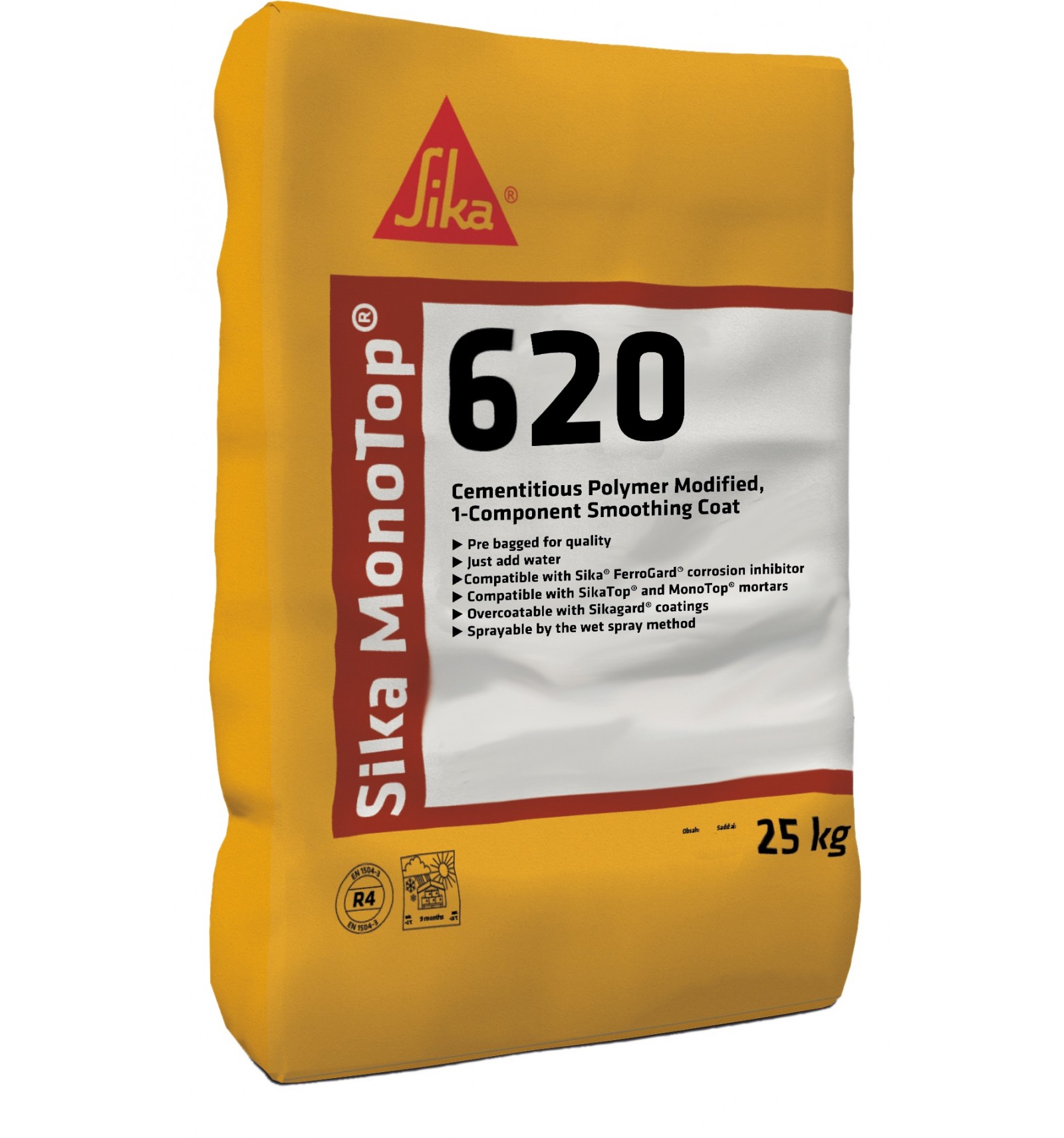 SikaMonoTop® - 620/726 to jednoskładnikowa zaprawa wyrównawcza i wykończeniowa, która modyfikowana jest polimerem (PCC). Doskonała do: