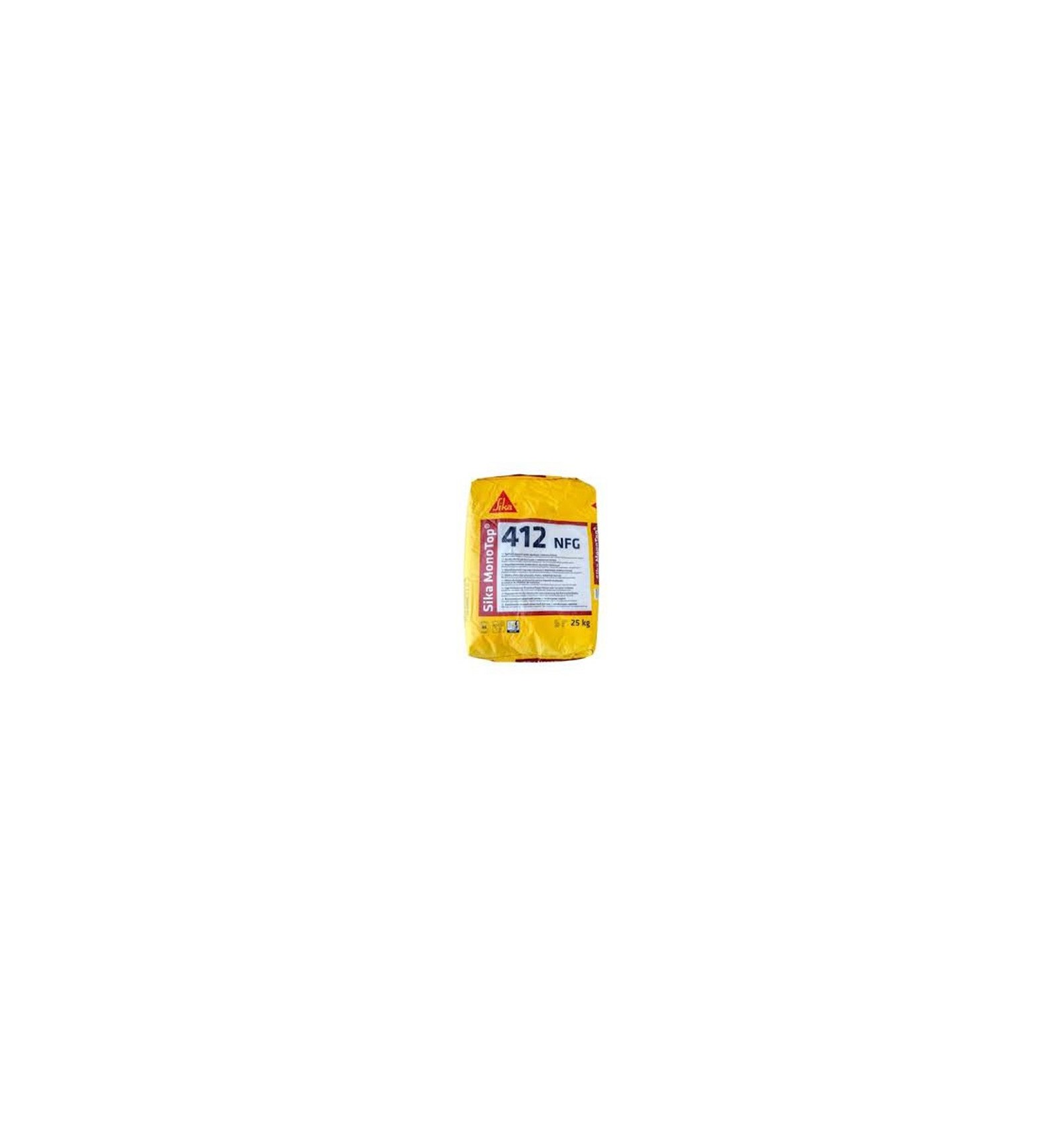 SikaMonoTop® - 412 NFG CZ należy wymieszać z wodą w proporcji 3,5 - 3,9 litra wody na worek 25 kg. Jego zużycie to około 19 kg/m2/cm - w zależności od grubości warstwy i szorstkości podłoża. Z jednego worka 25kg uzyskasz około 13,7dm3 świeżej zaprawy.