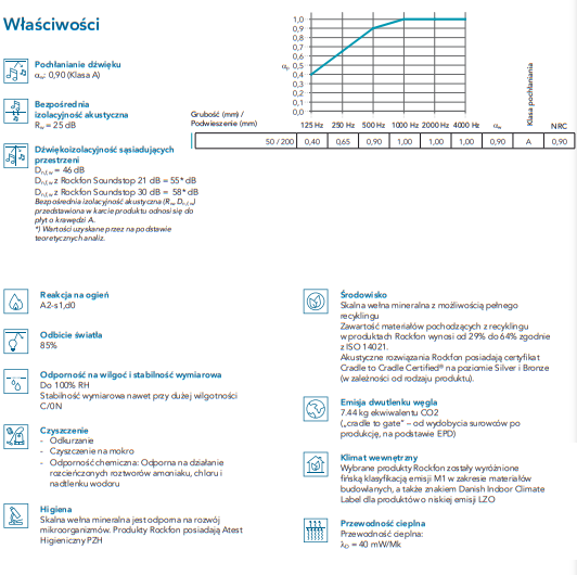 Wysoka Wydajność Akustyczna: Rockfon Sonar DB 46 został zaprojektowany z myślą o efektywnej izolacji akustycznej. Posiada wysokie pochłanianie dźwięku, co sprawia, że jest skuteczny w redukcji echa i hałasu.